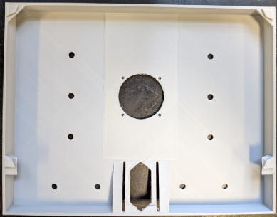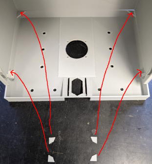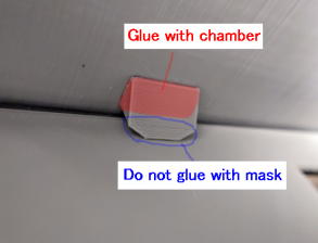 Glue 4 mask holders to chamber to hold the mask. Do not glue the mask itself because it needs to allow for replacement of the mask by sliding.