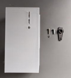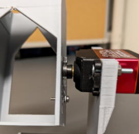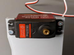 Fix the servo motor to the water bottle arm using M3x20 mm screws and nuts.