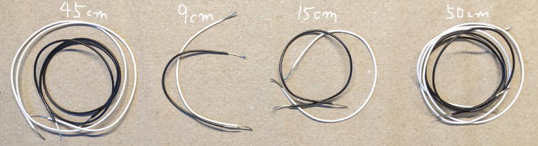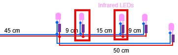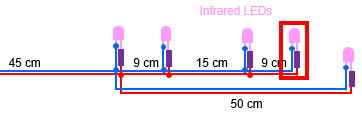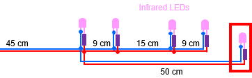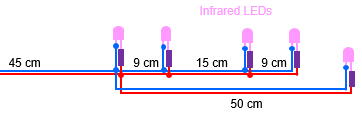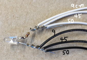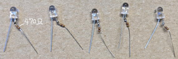 Prepare the specified lengths of wires and five IR LEDs soldered with a 470Ω register.