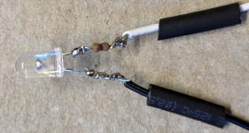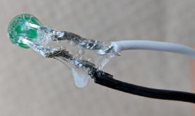 Solder the last two LEDs. Heat-shrink tubing cannot be applied after soldering of these LEDs so ensure the tubing is in place before the soldering.
