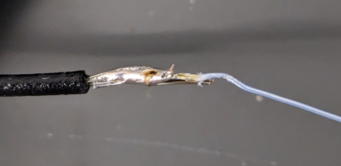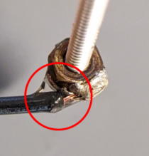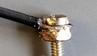 Solder the cable on the copper cable. Do it quickly not to melt lever.