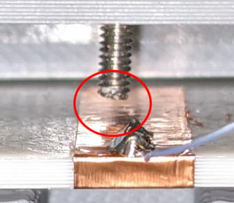 Turn the screw to close its tip to the copper tape.