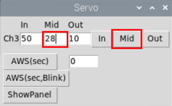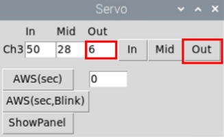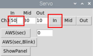 Connect the servo of the water arm and run OperantHouse software. Set the value of Ch3 Inside angle to "50" and press the "In" button.