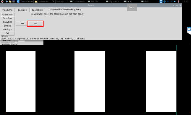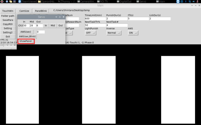 You can check the panel positions anytime by clicking "ShowPanel" button on the Servo window (Click again to hide them. Don't forget to hide them before actual task).