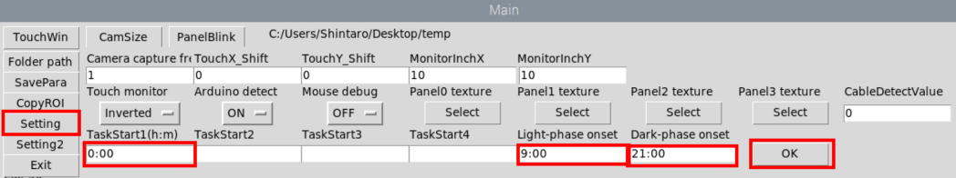 Set the switching time between Light-phase and Dark phase and task start time in the setting.