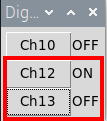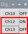 To switch illumination conditions to the light phase, click Ch12 and Ch13 to make the DigitalOut window look like as follow,