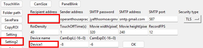 Now the chamber is illuminated with IR illumination. Open the "Setting2" and adjust the "CamExpD".