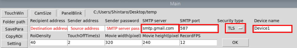 - SMTP server: The SMTP server name (for Gmail, use smtp.gmail.com).