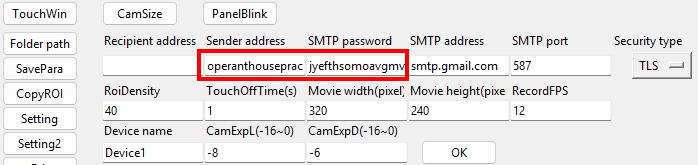 Sender address field and the recorded password in the