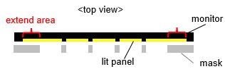 I recommend using the monitor with thin frame and the IR sensor bar to reduce a gap between monitor and mask to minimize blind spots the both sides panels (also don't forget to omit the chamber spacer and use the 1.5mm monitor spacers). Extending panels in both sides horizontally (see below) is also an effective way to minimize the blind spot.